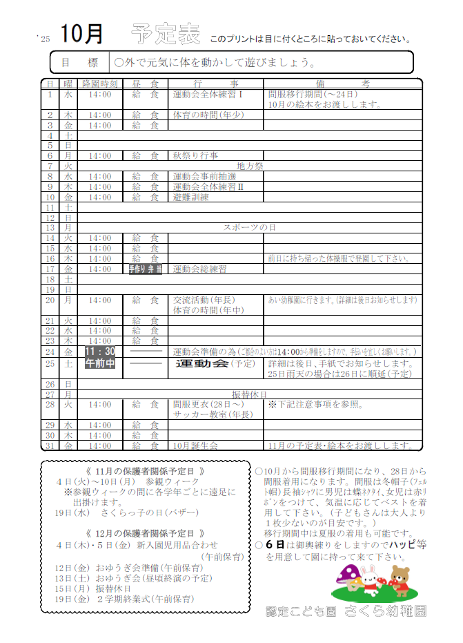 ※午前保育、長期休暇、土曜日の給食の掲載は行いません。
